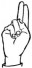 На ћирилици написано ДУЊА МЕЧАНИН састоји се из 11 слова [?]. Исписано ћириличном једноручном азбуком за глувонеме: